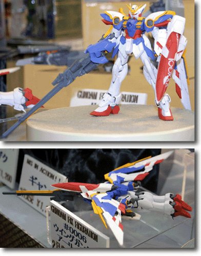 A poseable 1/144 scale action figure of Wing Gundam, based on the designs of Katoki Hajime. Nicely detailed, and it comes with the parts for its transformation into Bird mode, as well as multiple hands and weapons to play with!
